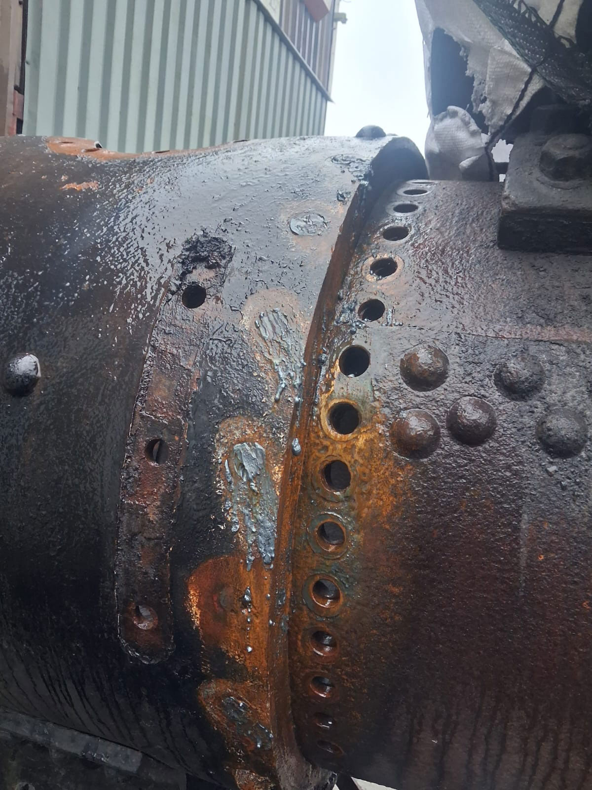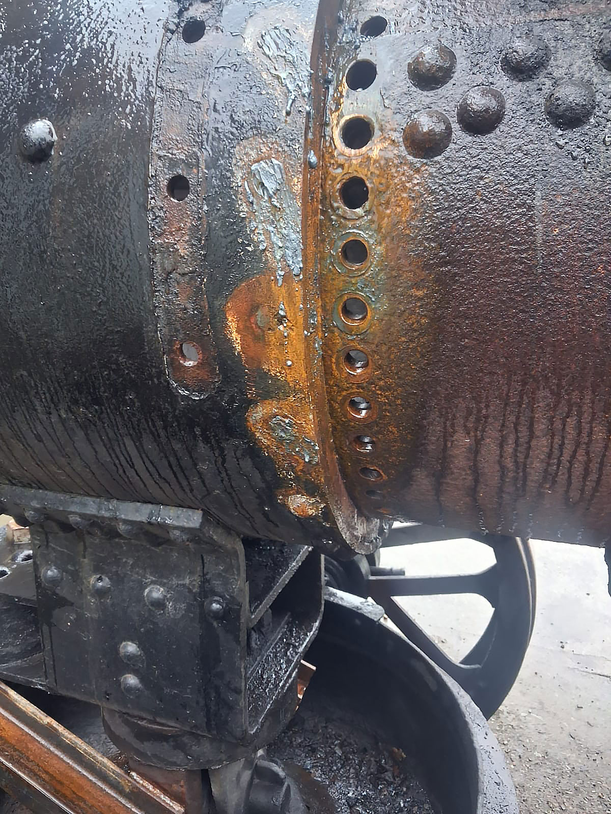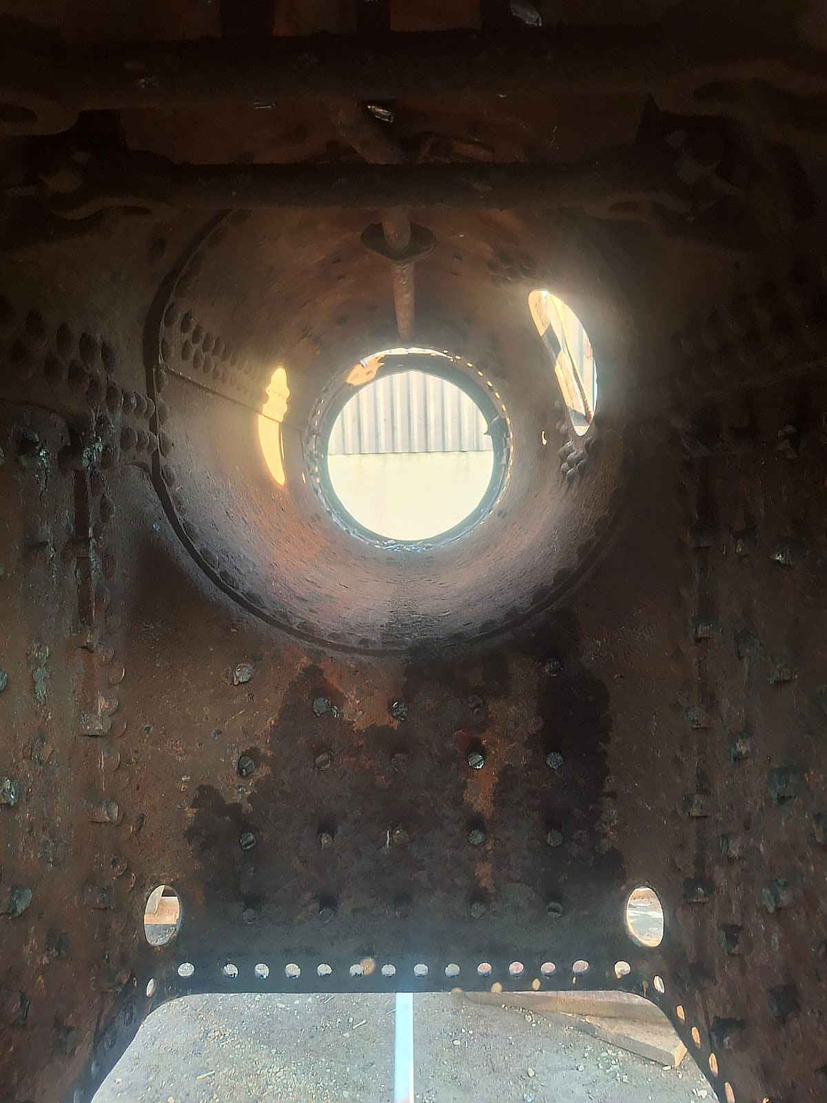 A rare glimpse into the interior arrived with clear visibility of the bridge stays and internal boiler structure. These components will guide the next phase of the engineering assessment, informing what must be repaired, replaced, or remanufactured.