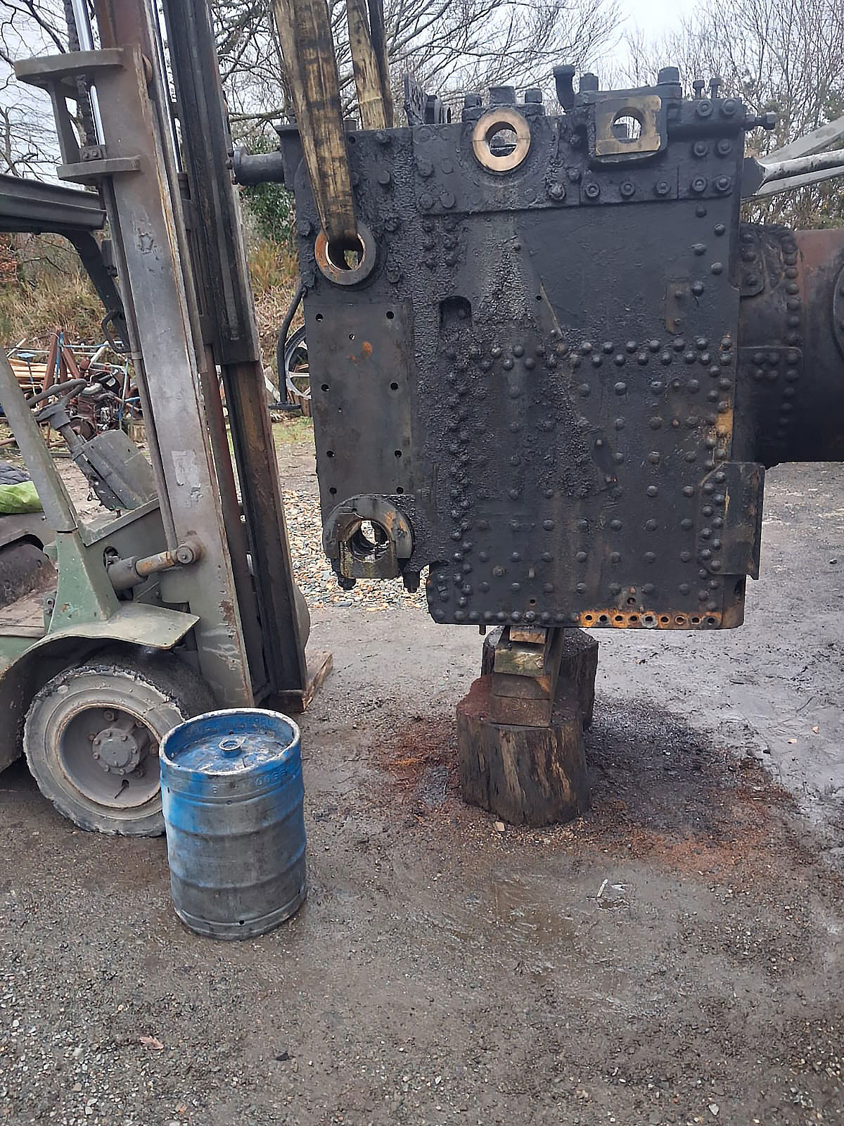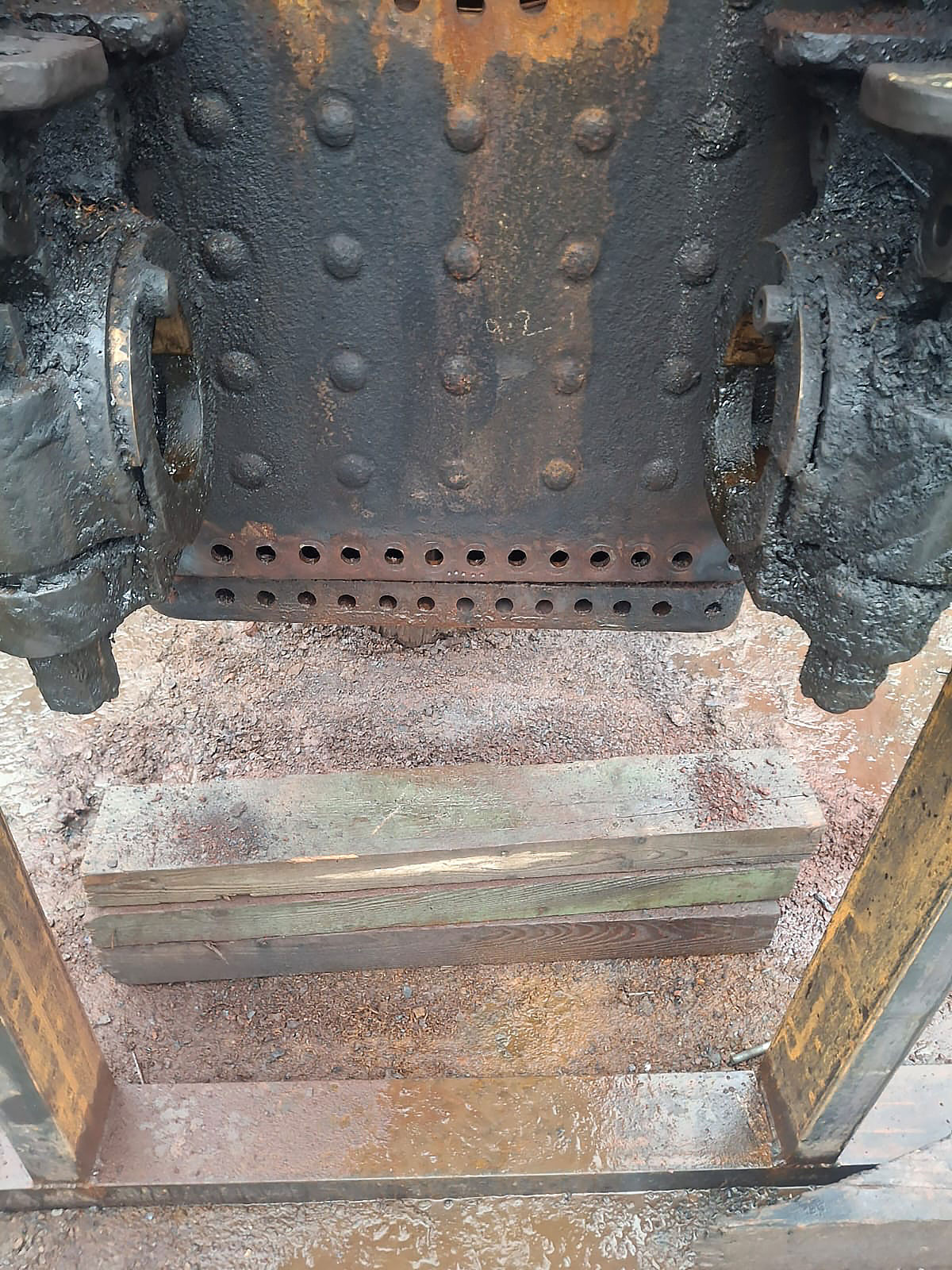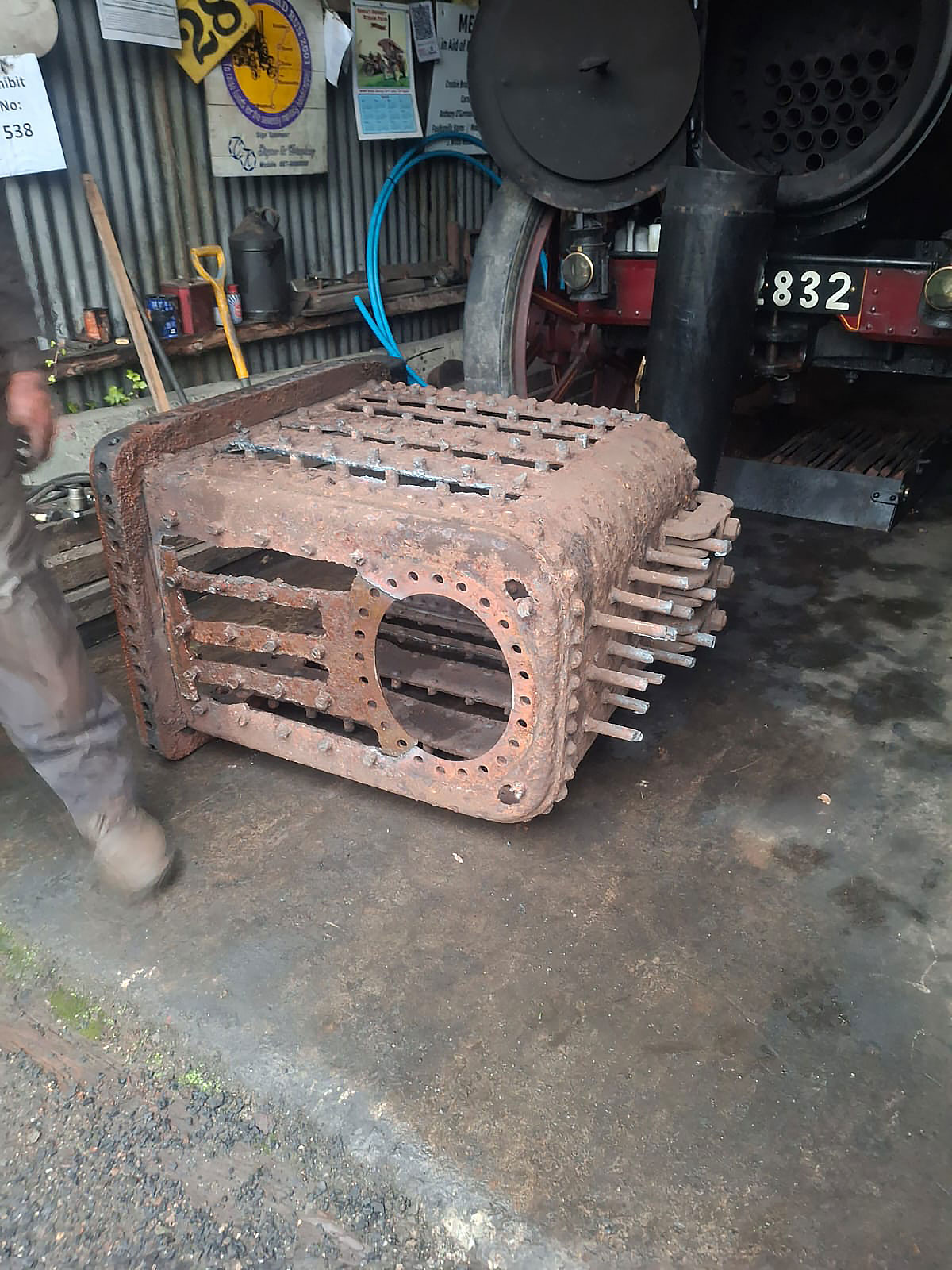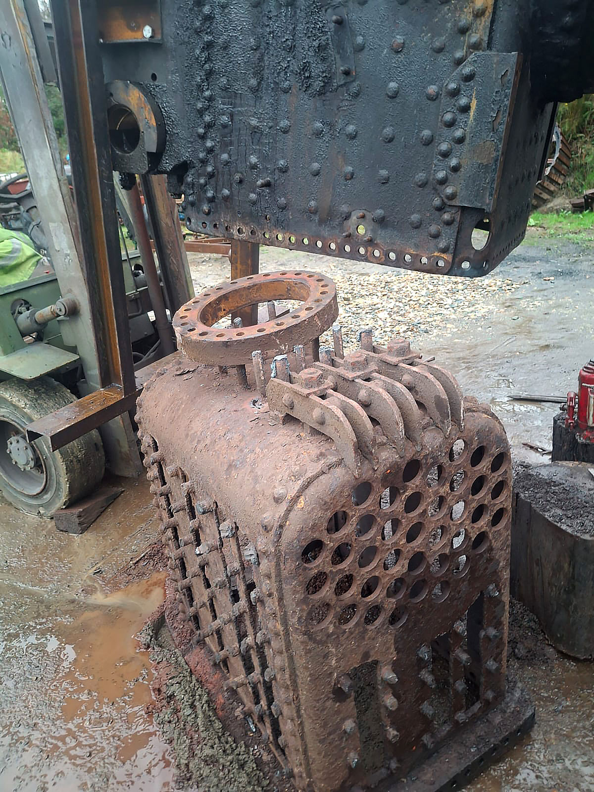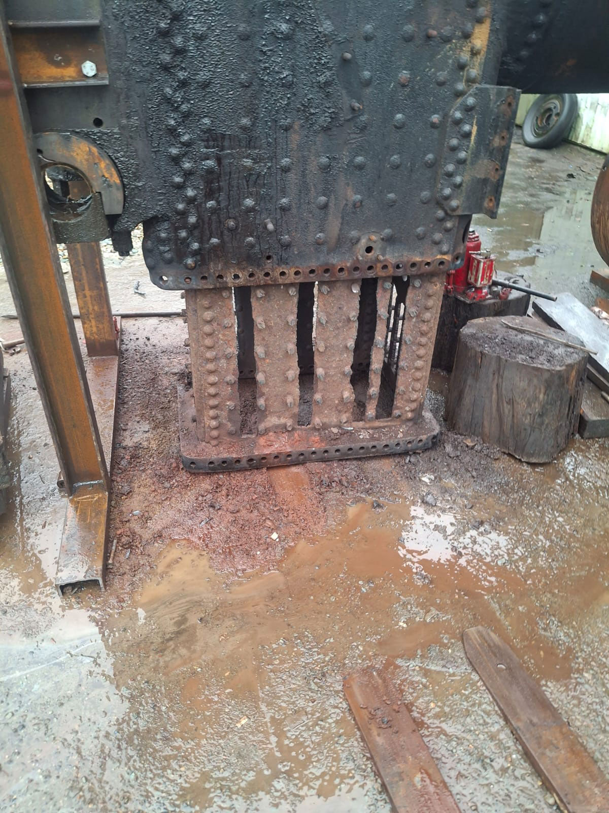 This structure supports the smokebox and front end of the boiler, and its removal was vital for gaining access to the smokebox rivets and tube plate.